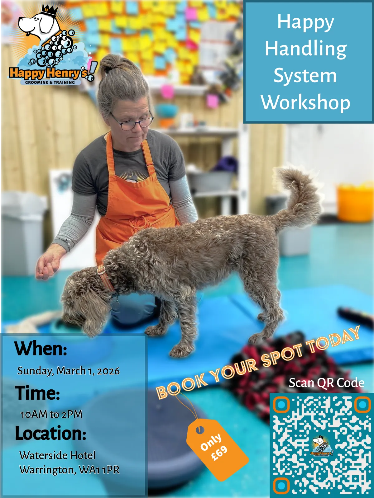 join Victoria Shepherd, Founder of Happy Henry's! Holistic Grooming & Training for 4 hours* of fun in warrington for what will be the first in a series of presentations to promote the BRAND NEW Happy Henry's! Happy Handling System